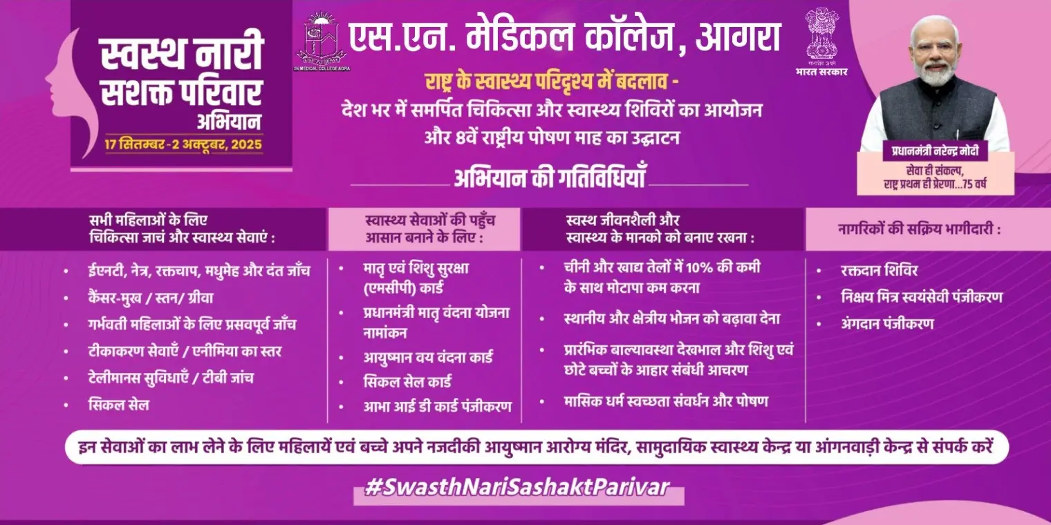 स्वस्थ्य नारी, सशक्त परिवार अभियानः एस.एन. मेडिकल कॉलेज में स्वास्थ्य शिविर एवं रक्तदान का सफल आयोजन on 17-Sep, 2025