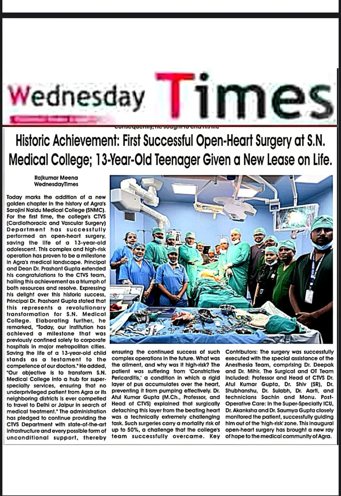 एसएन मेडिकल कॉलेज, आगरा में बिना चीर-फाड़ के दिल के सिकुड़े वाल्व का सफल इलाज – चिकित्सा इतिहास में नया अध्याय